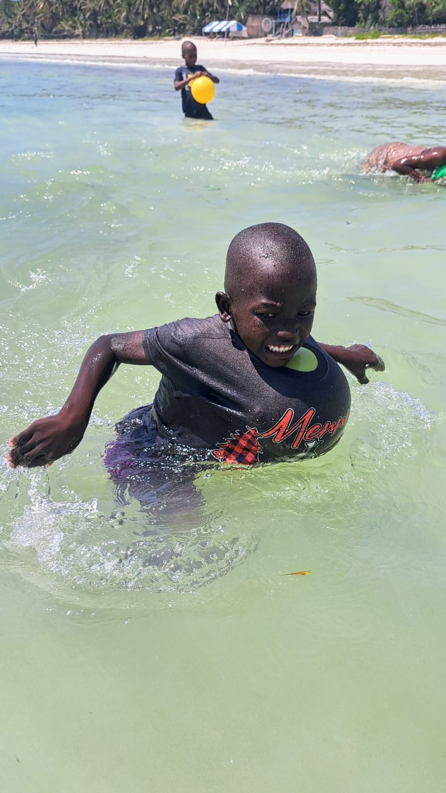 Danach ging es ins Wasser. Bei den Kleinsten war gerade Ebbe – ein echter Vorteil für uns Betreuer. Und ich wurde von den Kindern mit so viel Liebe und Dankbarkeit überschüttet, wie ich es in all den Besuchen zuvor noch nie erlebt habe.