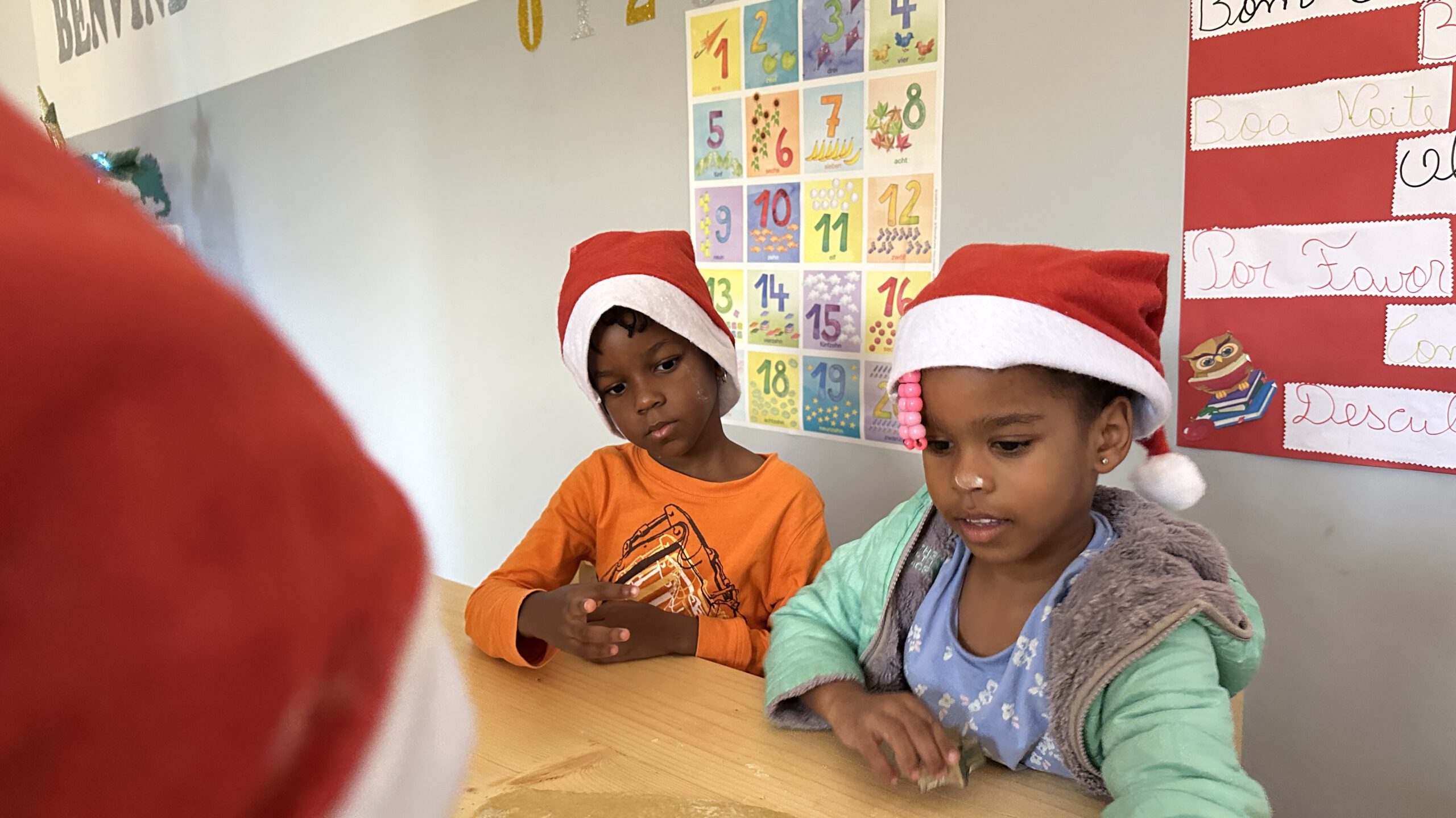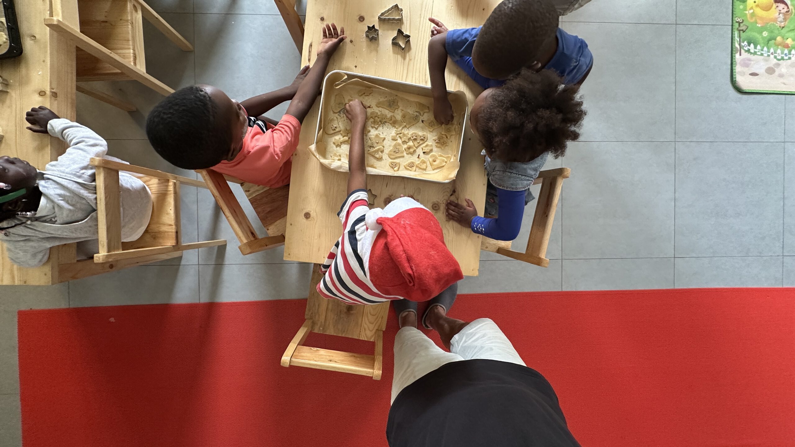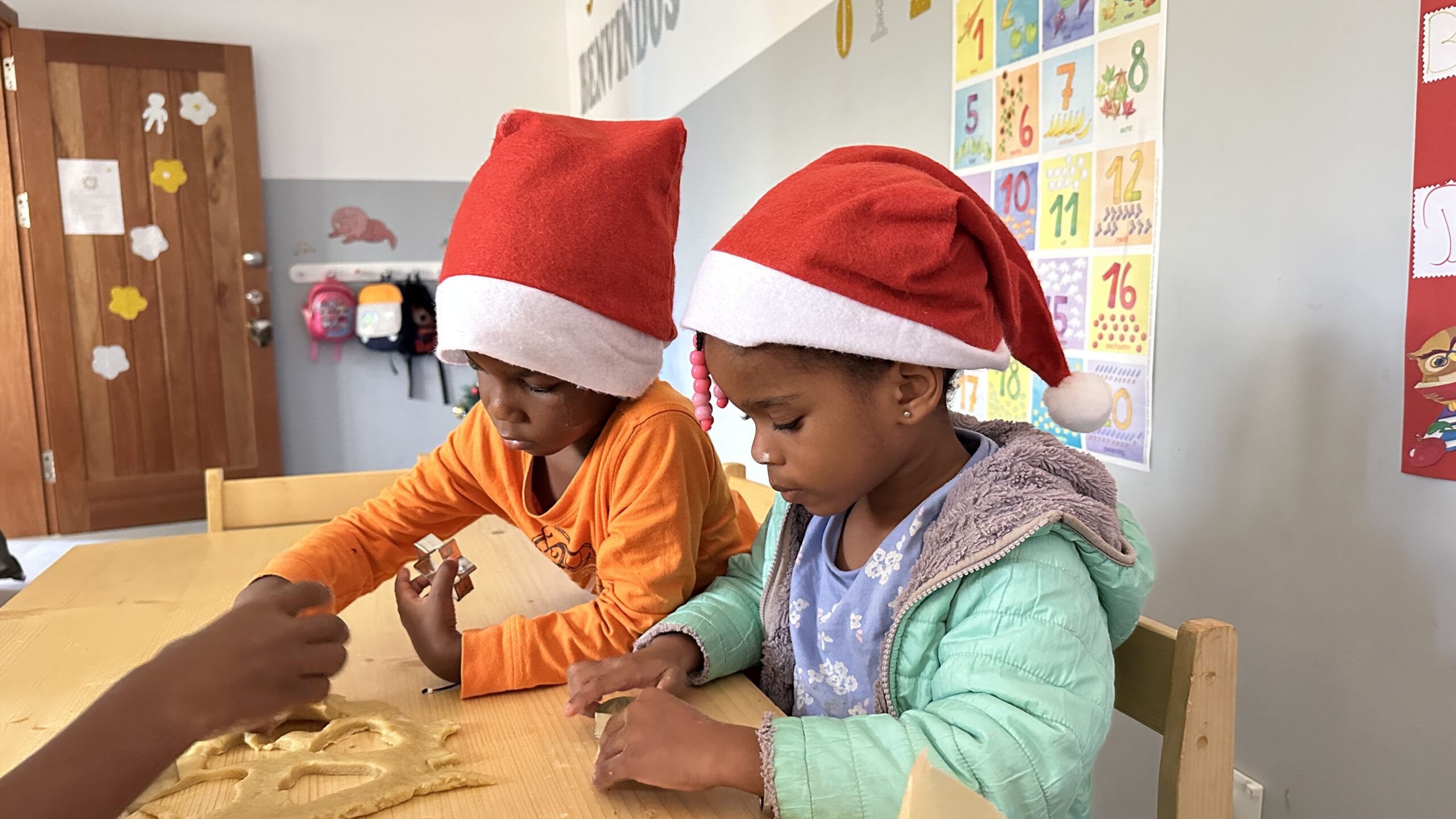 Vorher hatten wir noch versucht, mit den Kindern Plätzchen zu backen. „Versucht“ ist hier das richtige Wort – mit 27 Personen wird das schnell zum Abenteuer. Es gibt echte Profis, die versuchen, den kompletten Teig in ein einziges Förmchen zu pressen. Aber: Mission erfüllt! Jedes Kind bekam zu Weihnachten eine kleine Tüte selbstgebackene Kekse. und wir bekamen ein Klapprad vom Weihnachtsmann- echt sinnvoll hier!!!IMG_9912IMG_9912