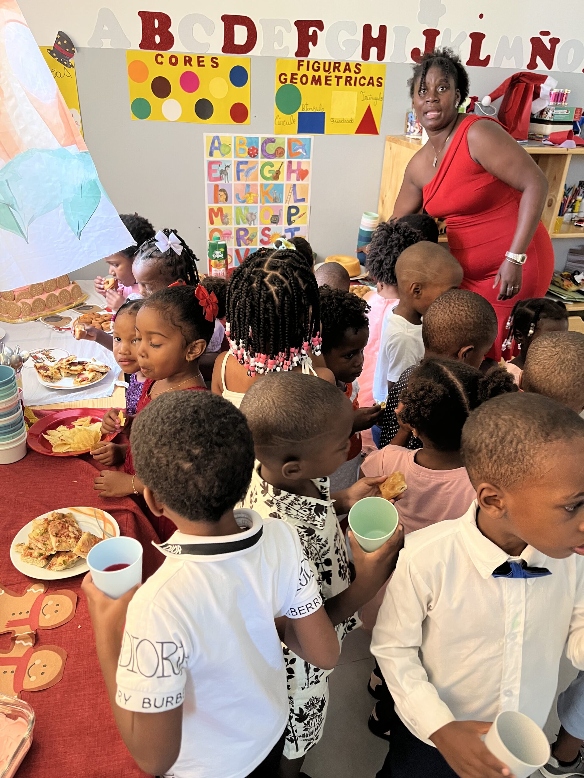 Björn, Saskia und Fionn sind inzwischen wieder gut in Hamburg gelandet. In nur zehn Tagen haben sie hier richtig viel für die Kinder bewegt – und natürlich auch Zeit mit ihnen verbracht. Kaum angekommen, musste Björn auch schon ran: Rein ins Weihnachtsmannkostüm und los ging die Bescherung für 25 Kinder und 4 Erwachsenen. Es wurde auch gesungen und getanzt nur Weihnachtsgedichte waren nicht dabei.Danach wartete ein leckeres Weihnachtsbuffet auf alle.