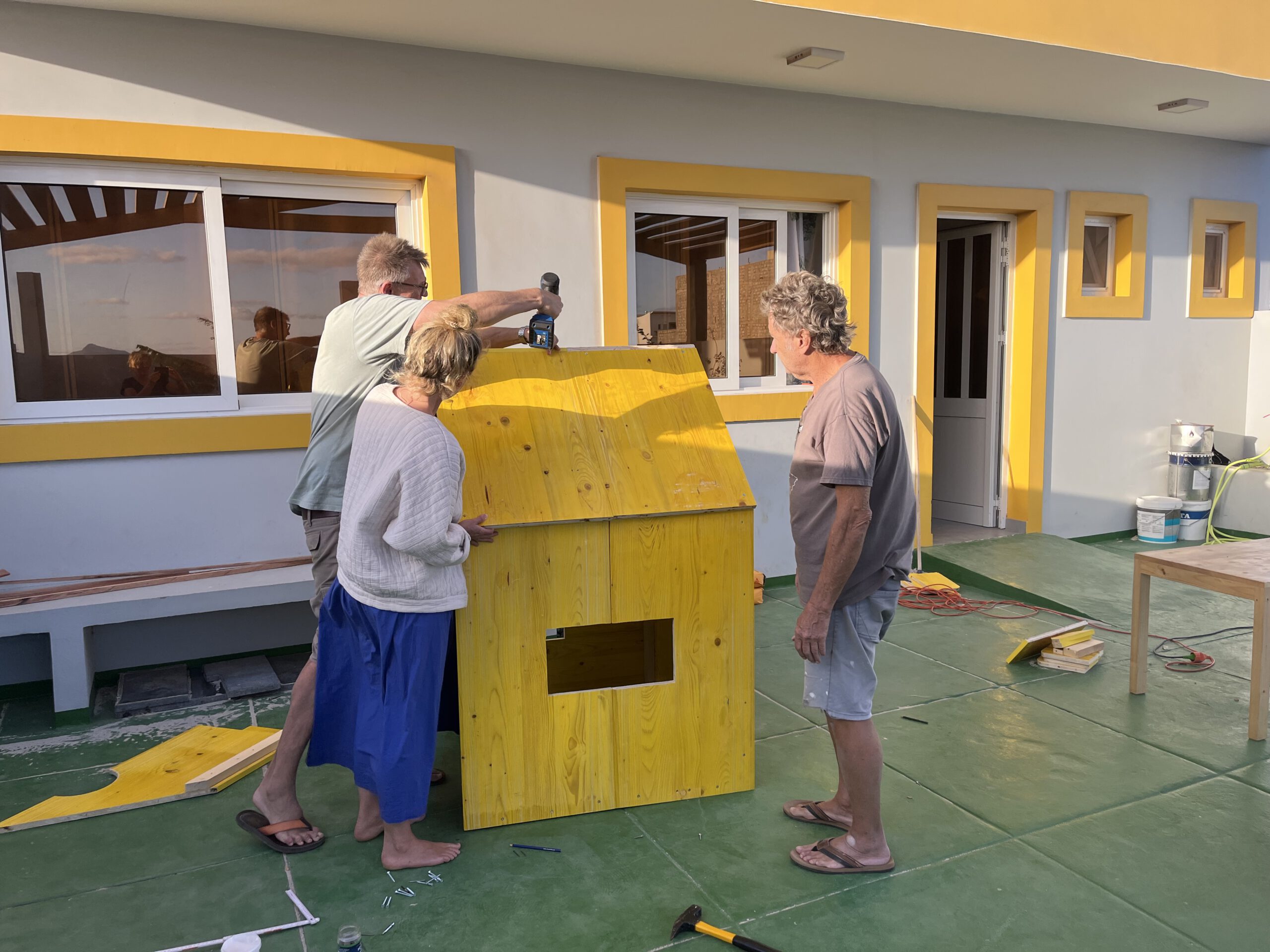Nach der Feier hieß es erst mal: Ferien! Zwei Wochen lang haben wir die Zeit genutzt, um im Kindergarten einiges aufzuhübschen. Es gibt jetzt mehr Regale, Kameras, Bauklötzer aus Holzresten, einen Basketballkorb, Kunst an den Wänden und sogar ein neues Kinderhaus. Der Sandkasten, den wir schon im September in Auftrag gegeben hatten, ist leider immer noch „in Arbeit“… ebenso wie die Wippe – wir bleiben gespannt.